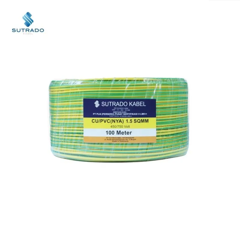 Sutrado Kabel NYA 1 X 1.5 mm adalah kabel inti tunggal dengan lapisan pelindung PVC yang digunakan untuk instalasi listrik indoor (tempat yang kering) dengan skala kecil contohnya untuk keperluan instalasi lampu maupun pemasangan stop kontak.