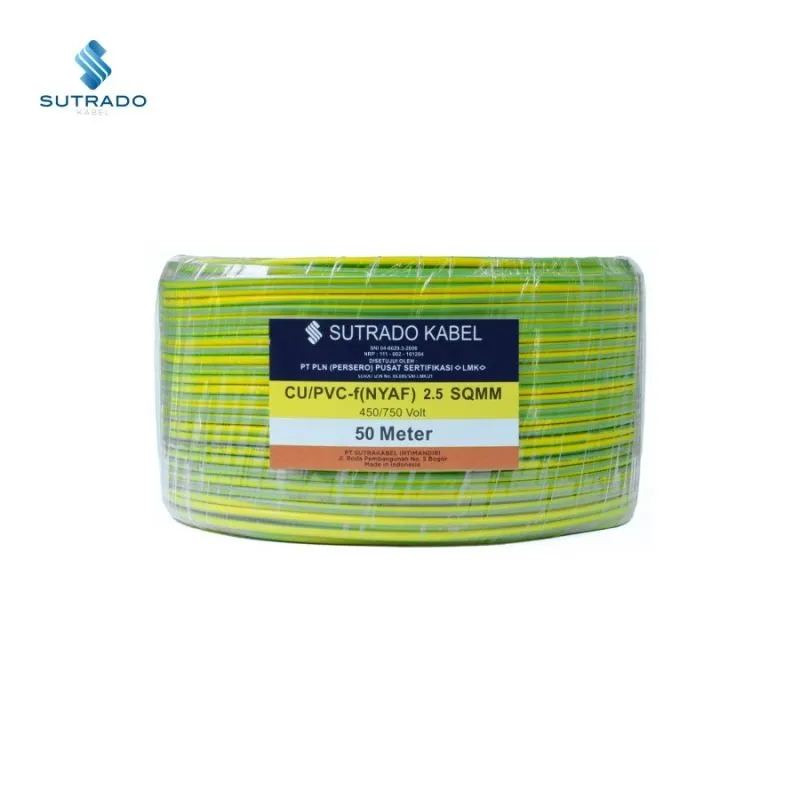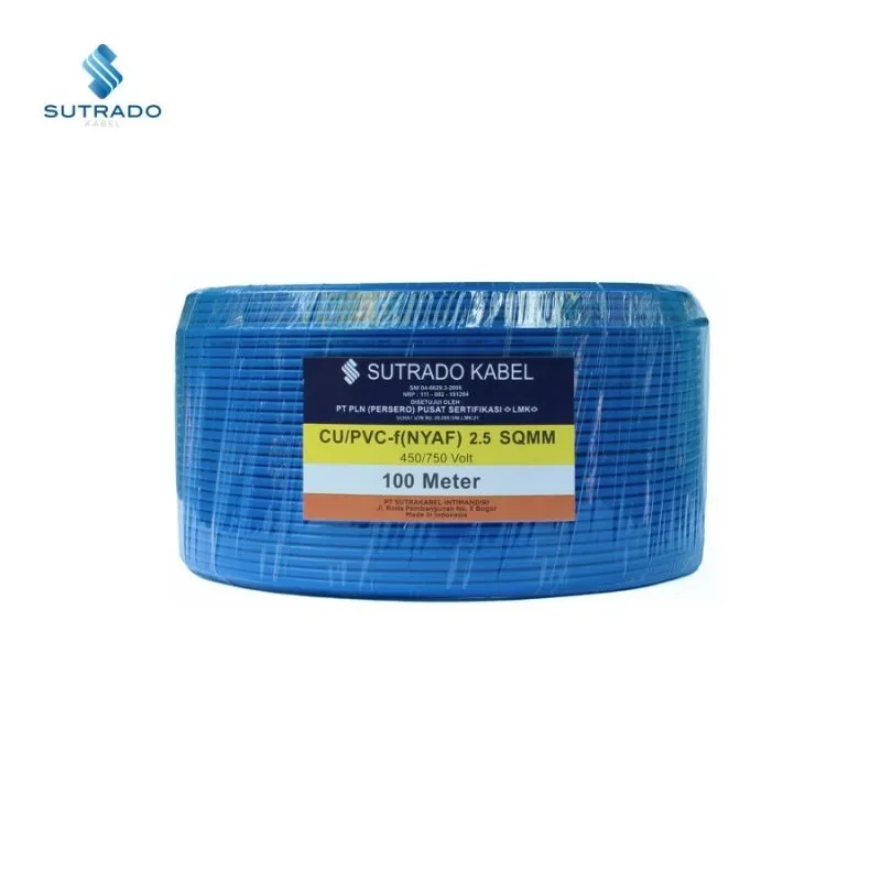 Sutrado Kabel NYAF 1 X 2.5 mm adalah kabel yang memiliki inti tembaga tunggal jenis serabut. Kabel NYAF digunakan untuk instalasi panel yang membutuhkan fleksibilitas tinggi/tekukan dan tempat kering.
