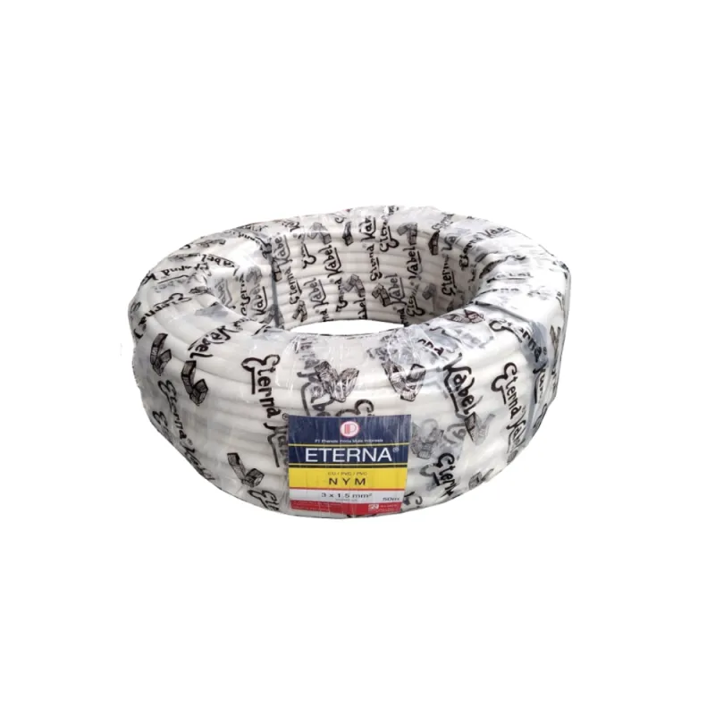 Eterna Kabel NYM 3 X 2.5 mm 50 Meter adalah kabel yang memiliki tembaga lebih dari satu dengan isolasi sebanyak 2 lapis sehingga keamanan lebih baik dari pada kabel NYA. Kabel NYM dapat digunakan di dalam maupun di luar tembok.