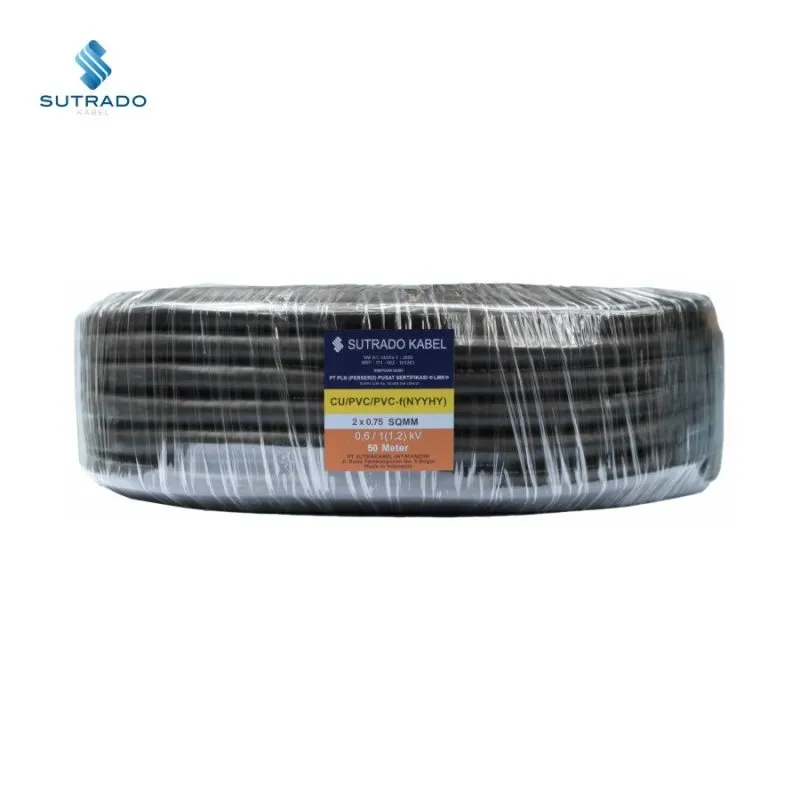 Sutrado Kabel NYYHY 2 X 0.75 mm sangat fleksibel dan tidak mudah patah, dapat digunakan di dalam maupun di luar ruangan. Memiliki inti tembaga berbentuk serabut dengan pelindung lapisan isolator yang aman bagi jangkauan manusia.