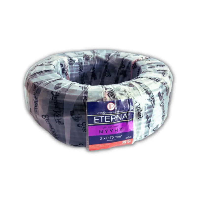 Eterna Kabel NYYHY 2 X 0.75 mm sangat fleksibel dan tidak mudah patah, dapat digunakan di dalam maupun di luar ruangan. Memiliki inti tembaga berbentuk serabut dengan pelindung lapisan isolator yang aman bagi jangkauan manusia.