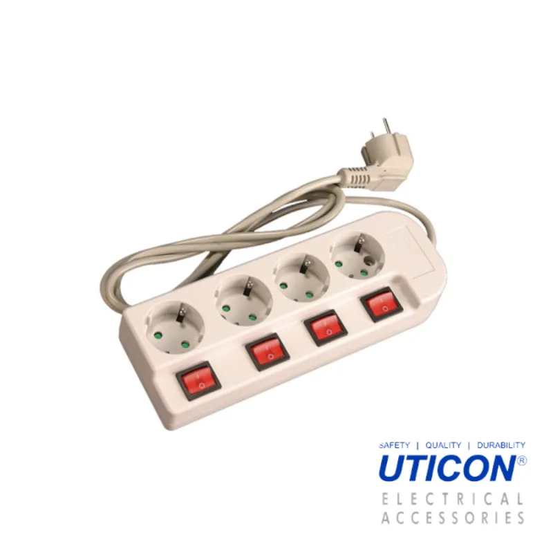 Stop Kontak 4 Lubang + 4 Saklar + Kabel 1,5 Meter tipe ST-1482 SW, Berbagai metode dan posisi pemasangan untuk disesuaikan dengan kebutuhan anda dan lokasi pemasangan, Saklar dengan lampu indikator, Terminal kontak kuningan, Kabel 1.5M H05VV-F 3 X 0.75 Sqmm, Kabel berkualitas tinggi dengan standar Internasional & SNI, Dilengkapi perangkat penutup soket untuk keamanan tambahan, Ukuran ringkas, tepat & portabel – mudah dipakai dan dibawa kemana-mana, Posisi saklar menurun untuk kenyamanan pemakaian dan kemudahan penyimpanan serta instalasi, Saklar dengan lampu indikator, Saklar tersendiri untuk setiap soket untuk penghematan pemakaian listrik, Soket akhir berjarak lebih lebar untuk mengakomodasi steker lebar atau AC adaptor besar, Steker arde insulasi berkualitas tinggi berstandar Internasional & SNI, Dilengkapi dengan terminal pembumian untuk keamanan, Instalasi saklar indikator dengan terminal ganda memutuskan aliran listrik pada kedua terminal (total) bila dimatikan.