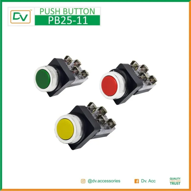 Push Botton PB25-11 1NO+1NC berfungsi sebagai tombol yang fungsinya menghubungkan dan memutus aliran listrik, tombol ini dipakai pada sejumlah benda elektronik, di antaranya buzzer, relay, LED dan perangkat output lainnya. Tombol tekan akan menginisiasi rangkaian sistem agar aktif.
