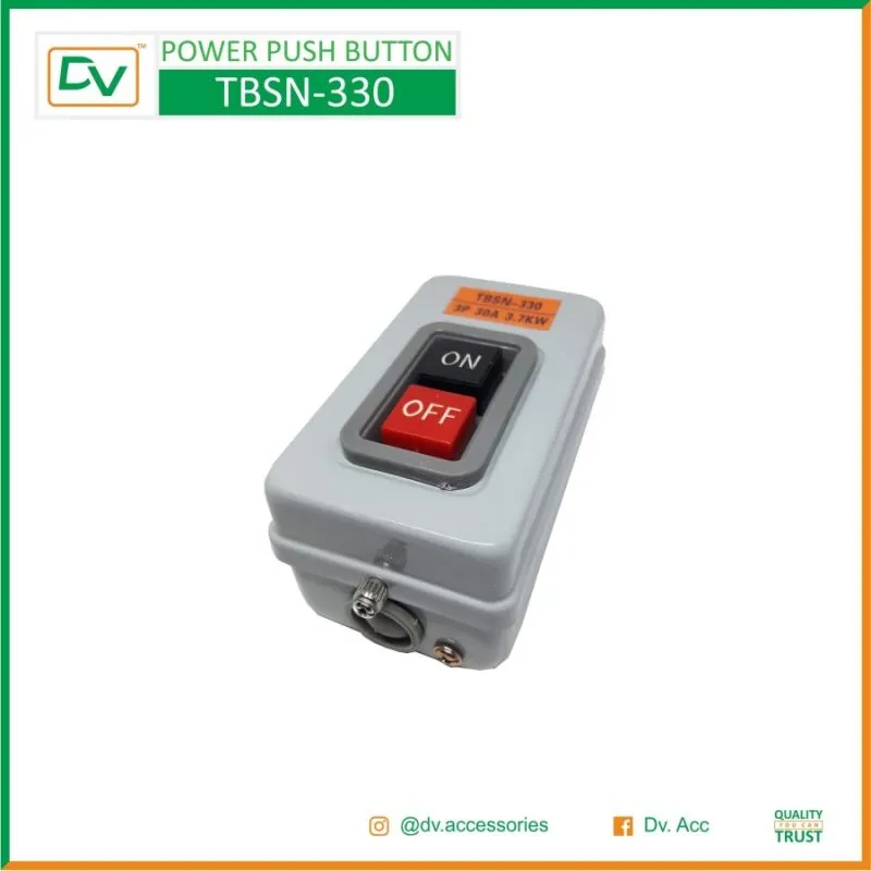 Push Button On Off Great IB/OB TBSN 330 30 Ampere 400 V berfungsi sebagai tombol yang fungsinya menghubungkan dan memutus aliran listrik, tombol ini dipakai pada sejumlah benda elektronik, di antaranya buzzer, relay, LED dan perangkat output lainnya. Tombol tekan akan menginisiasi rangkaian sistem agar aktif.