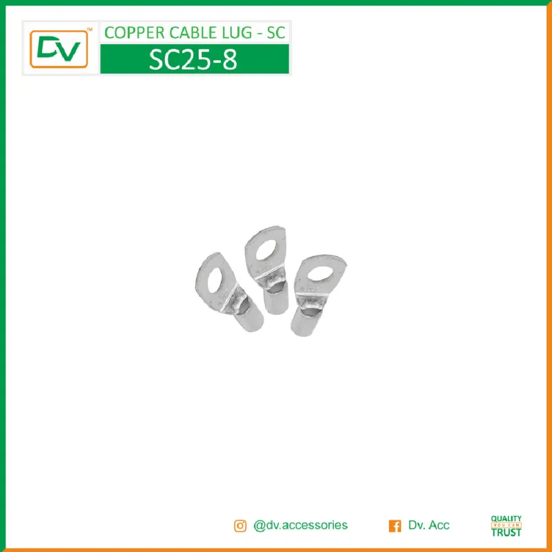 Skun SC25-8 25mm 10 pcs berfungsi untuk digunakan sebagai penyambung / koneksi antara kabel dengan alat listrik.