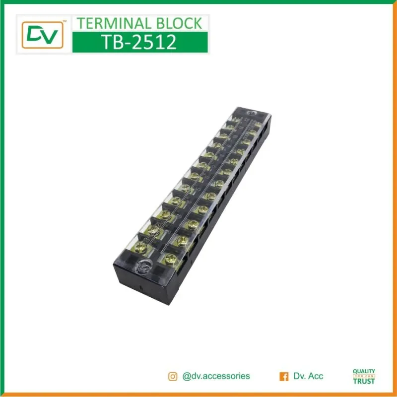 Terminal Block – TB SERIES Type : TB-2512. Current Rate : 25A, Pole : 12P, Voltage Rate : 600V, Wire Section : 0.5 – 2.5mm, Weight : 120gr