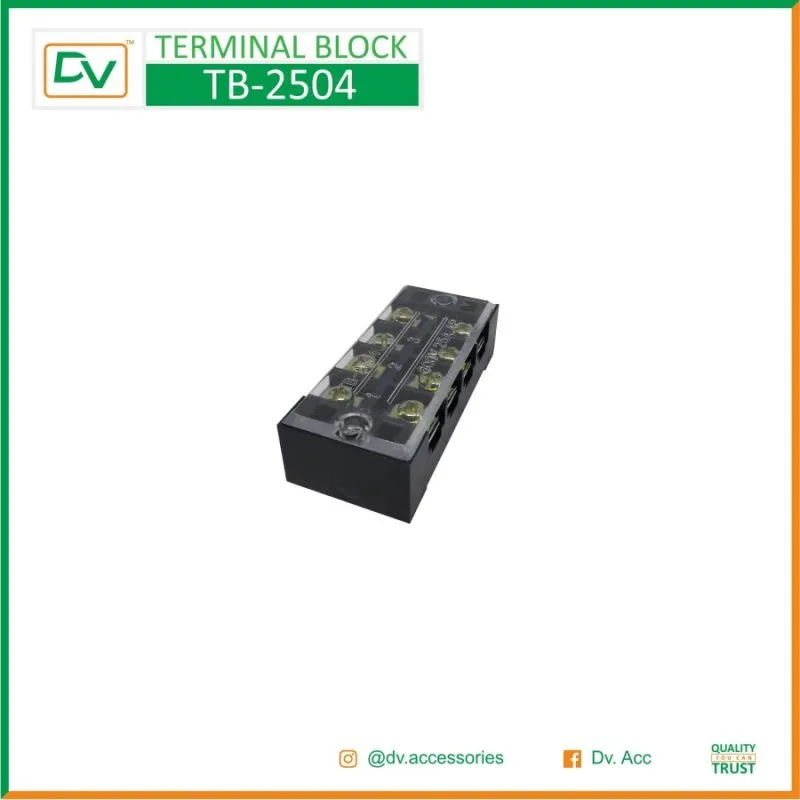 Terminal Blok 25mm 4 Phase TB 2504, Current Rate : 25A, Pole : 4P, Voltage Rate : 600V, Wire Section : 0.5 – 1.5mm, Weight : 45gr