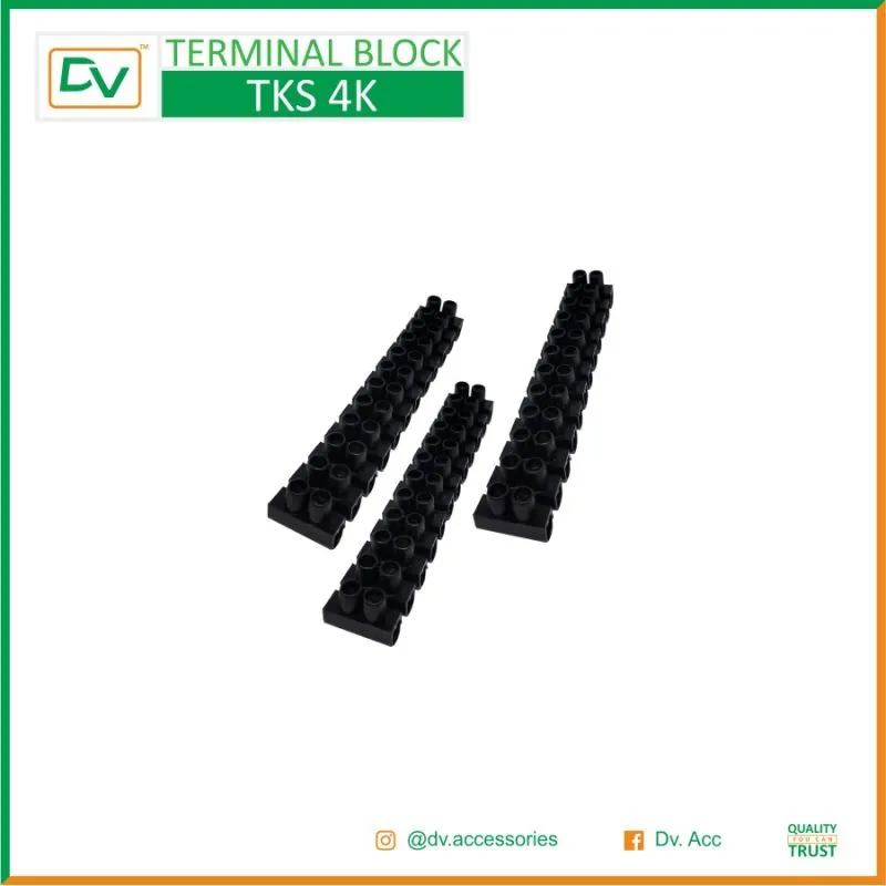 KRUSTIN Type : TKS-NEW-4, LUkuran : 91,4×15,6×10,8mm, Ukuran Kabel : 2,5-4mm Rating, Arus : 3A Voltage : 380V Warna : Hitam Weight : 18 gr
