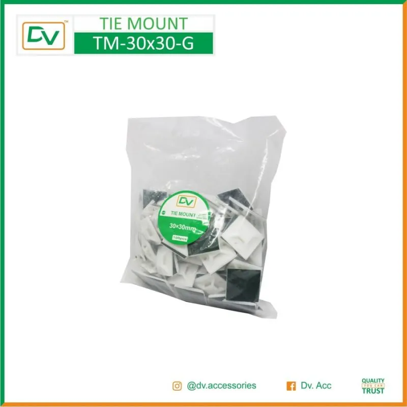 Tie Mount 30X30, Size LxW : 30mm x 30mm, Size Tie : 6,4mm, Packing/Bag : ±100 PCS, Color : Green Base, Weight : 290 gr
