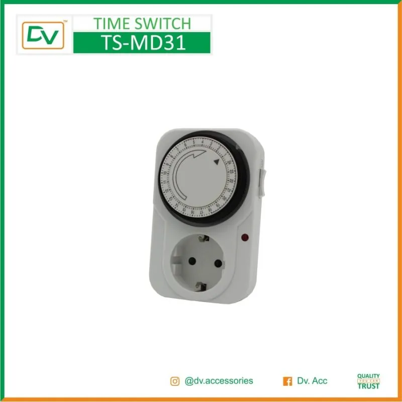 Timer Analog Type : TS-MD31, Function : Analog stop kontak timer, Time Program : 24 hours, Time Range : 15 minute, Current : 16A, Weight : 200gr