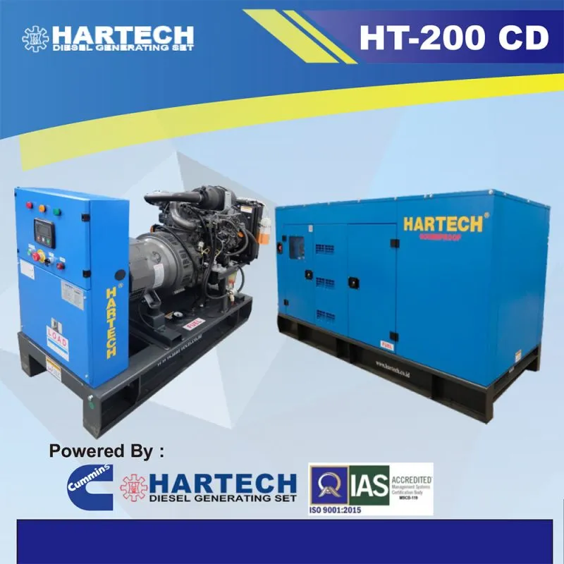 Prime Power : 200 kVA; Engine : CUMMINS 6CTAA8.3-G2; Generator : HARTECH HTG274H; Type : Silent, Diesel, 3 Phase, 1500 rpm, 220/380 V AC, 50 Hz; Material : Besi; Ukuran/Dimensi : (P)3.610mm x (L)1.360mm x (T)1.800mm; Berat : 2750Kg; Kapasitas tangki : 260 liter; Kelengkapan Produk : Accu, toolkit standar, buku petunjuk pengoperasian genset, kartu…
